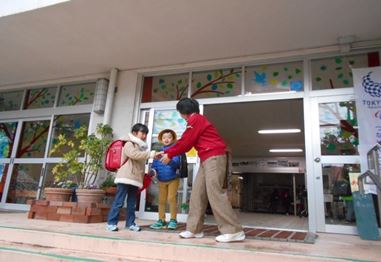 九品仏小学校では、校長先生と握手をして、1日の学校生活がスタートする。