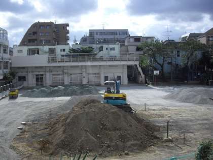 夏季休業日に入って“校庭改修工事”が始まっています。工事も順調に進んでいます。