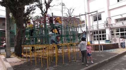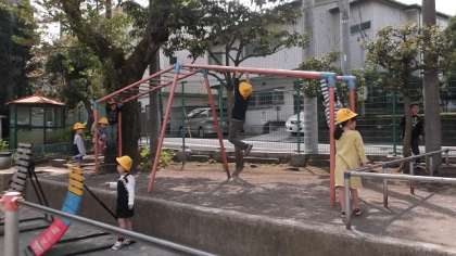 安全に校庭で遊べるように固定施設(遊具)の使い方を勉強しました。
