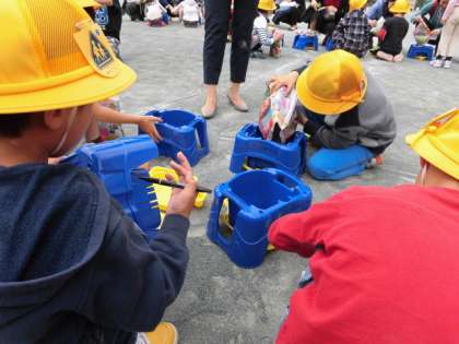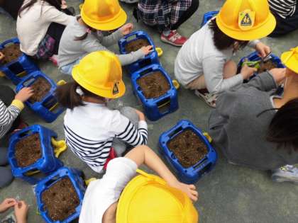 保護者の方に手伝って頂きながら、「土入れ」「種まき」「肥料まき」のところまでしました。やり方の写真を拡大して視覚的にも伝えました。また、1年生も落ち着いて活動できたこともあり、予定時間よりも早く終わることが出来ました。