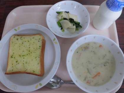 【献立】 ガーリックトースト 牛乳