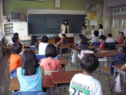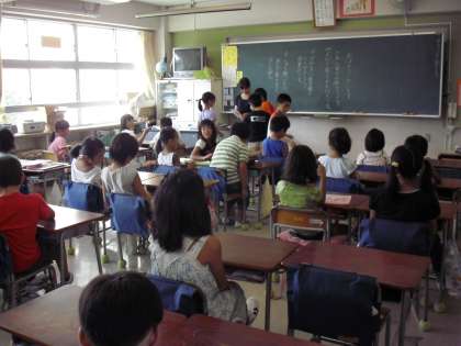 4年生の教室では、朝のあいさつを笑顔で・・・。