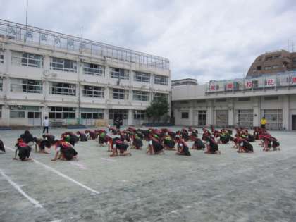 校長先生からは、「はっ!」と言うかけ声をしっかり出すことと、動きを大きくすることのアドバイスをいただきました。クラスで練習の様子のビデオを確認することで、その大切さを客観的に実感することもできました。また、別の自分たちの課題にも気付いたようです。3年生の教室では「まだこしが高いな」や、「そろえるときれいだね」との声が。4年生の教室では「3年生とグループ練習をしてもっと教えてあげたい」との声が聞こえてきました。