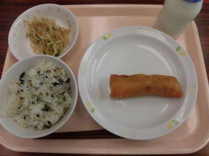 【献立】 わかめとじゃこのごはん 牛乳
