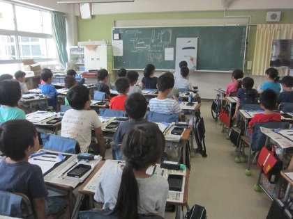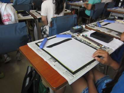 毛筆を使った学習が始まりました。今日は筆づかいに気をつけて、「横画」の練習をしました。終わった後は手が真っ黒になっている子どもたちがたくさんいました。