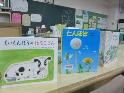 2冊目の「たんぽぽ」は、たんぽぽの花のつくりなどを紹介している理科的な絵本です。2ページにわたる根の絵におどろきの声をあげている子もいました。