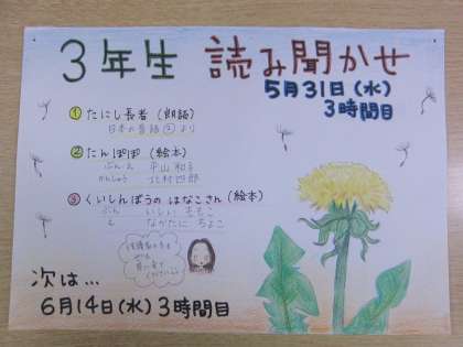 「たにし長者」の朗読では、言葉からイメージを広げて物語を楽しみました。「こしがぬけるほどおどろいた」と言う表現が気に入った様で、こっそり何度もつぶやく姿が見られました。