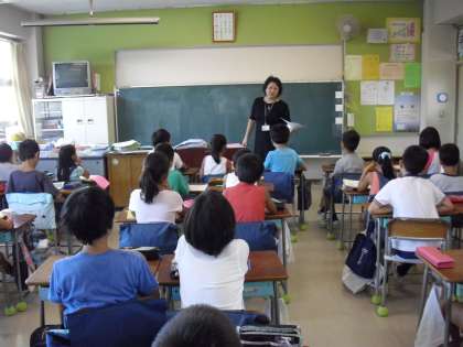4年生は、朝の会のまえの時間を利用して・・・東京都の“環境教育優秀校の表彰式”のことを子どもにわかりやすく話していました。