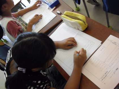 3年生は、国語のワークシートの課題に答えていました。教科書をじっくり・・読んで・・・。