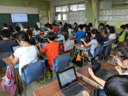 本日行われた、ヤゴ救出作戦に向けて4年生は調べ学習を進めてきました。タブレットパソコンを一人一台使い、ヤゴの生態や種類、飼い方にいたるまで、意欲的に調べていました。ローマ字入力もできるようになり、直感的な操作と合わせて上手に扱うことができました。