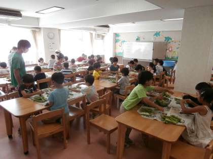 6/12 2年生ソラマメのさやむき