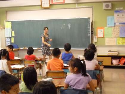 3年生の教室・・・“国語科:間違いやすい漢字指導”先生が黒板に子どもたちがよく間違える“字”を黒板に書き・・・間違っているところを子どもに気付かせていました。