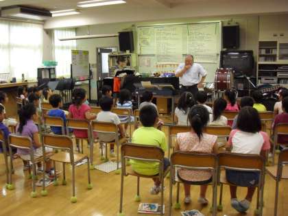 音楽室では、1年生が“音楽発表会”で歌う歌を練習していました。講師の先生の指導を受けて練習していました。