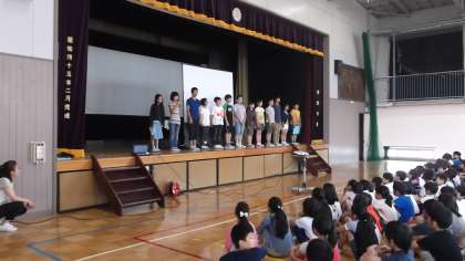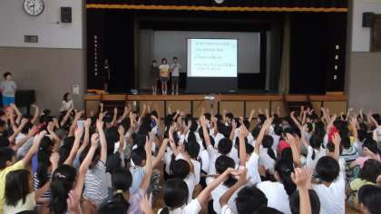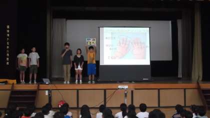 6月15日の保健集会は「夏を元気にすごそう」をテーマに、保健給食委員会の5・6年生の児童が、1〜6年生のみんなが分かりやすくて、楽しめるようにと、クイズ形式で発表しました。手洗いやハンカチの大切さ、とびひについて、プールで気をつけること、熱中症にならないために、という内容を、みんなよく考えて、熱心に聞いていました。