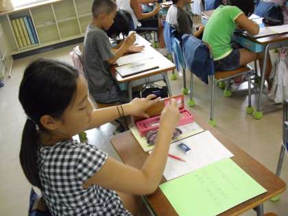 1年生は、朝の会の前に、連絡帳の確認・・・大事な保護者の方からの連絡の確認をしてから・・・朝の会をします。