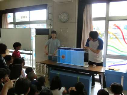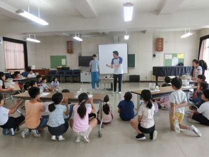 4年生は社会科で水道について学習しています。水道キャラバン隊の皆様には、水が私たちに届くまでの流れや、水道の歴史について教えていただきました。映像や実験で、よりわかりやすく学ぶことができました。水の大切さを学ぶことが出来たので、エコ活動につなげていきたいです。楽しい学びの時間をありがとうございました。※写真の他への転用はご遠慮下さい。