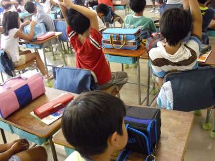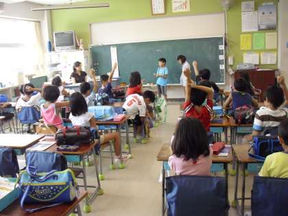 2年生の教室では、“朝の会”スピーチをしているところです。真剣に聞いていました。