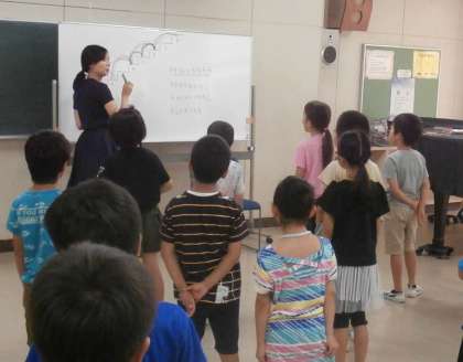 音の階段を上ったり下りたりするのを見ながら、七夕の歌を音程を意識して歌えました。