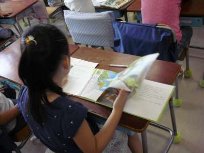 1年生は、先生が来る前に・・“朝 読書”をしていました。