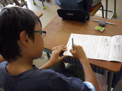 5年生は、“朝 漢字練習”をしていました。自分の課題を明確に持てています。