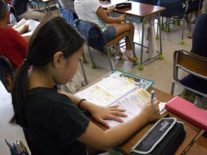 4年生の教室では、“朝の会の前の時間”を活用して、朝読書や朝自習を自主的に行っていました。時間になると日直が前に出て、“朝の会”が始まります。