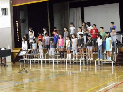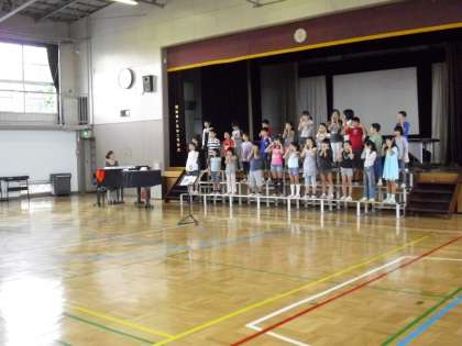 今朝、合唱団は、朝練習を行いました。画面は、発声練習です。おなかから“声”を出す練習・・・必ずと言っていいほど、練習の初めに行っています。