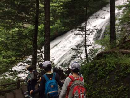 湯ノ湖畔を湯滝の頂上まで歩き、湯滝まで降りて行きました。