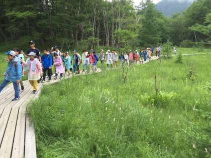 戦場ヶ原のハイキングは、曇り空だったので、みんな元気に歌を歌ったりおしゃべりしたりしながら楽しく歩きました。
