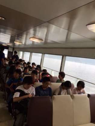 雨模様のため、霧が多くて眺めはあまりよくありませんでしたが、デッキに出て気持ち良さそうに風を受けている人が多かったです。