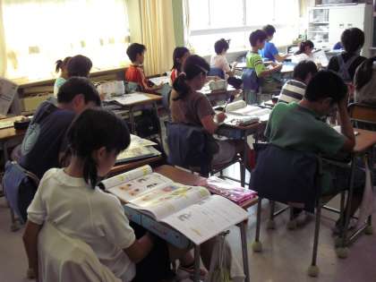 5年生は、“理科学習”授業の進め方のガイダンスをしていました。しっかり聞いている子、指示より早くやろうとする子、先生の適切な指導がありました。