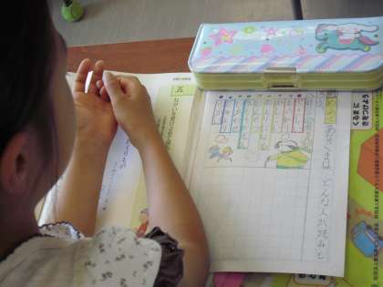 3年生は、“朝の会”を始めるところです。1時間目の国語の用意もきちんとできていました。ノート見るとカラフルになっていて・・・いつ見ても学習内容が分かる工夫がされていました。