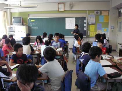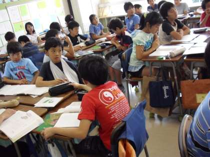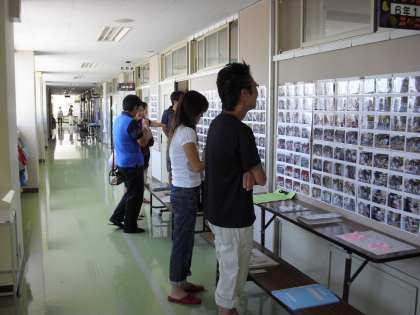 6年生は、“国語科:未来の学校”について調べて、グループのまとめをして、発表会への準備・・・。廊下の夏休み自由研究や日光移動教室の写真を保護者の方にご覧いただきました。