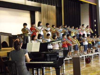 2年生ーリズム遊び、鍵盤ハーモニカ演奏、歌
