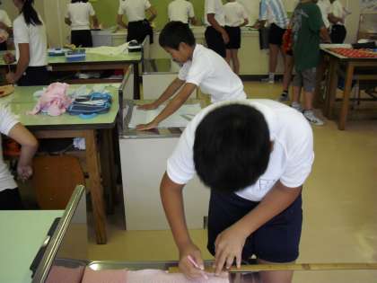 6年生は、“家庭科:ランチョンマット作り”・・・・どの子どもも真剣に取り組んでいました。手を怪我している子も工夫して取り組んでいました。