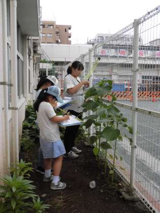 今日も、3年生の子どもたちが観察に来て、熱心に観察カードを書いていました。