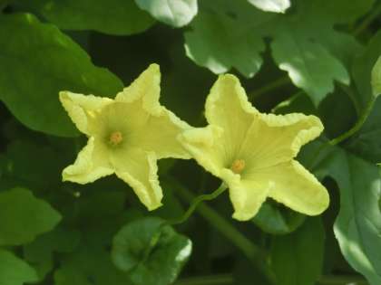 これを、「緑のカーテン」といって、遮光や蒸散の効果で建物を涼しくしてくれます。実も収穫できるので、とてもエコですね。
