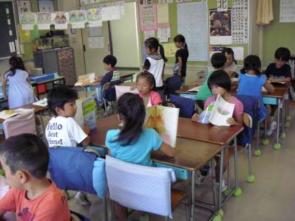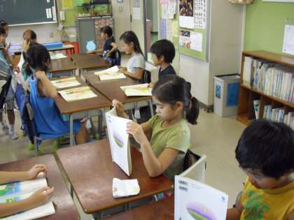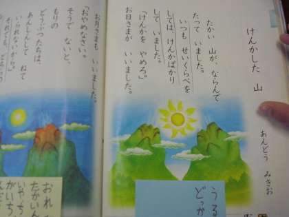 1年生は、“国語科:けんかした 山”の教材をグループで音読準備・・・。