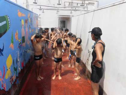 今日は、屋上のプールから元気な歓声が聞こえてきました。