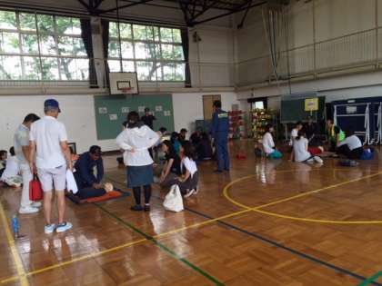 猛暑の中でしたが、100人以上の地域の運営スタッフの皆様が集まりました。本校からもPTA会長をはじめ大勢のPTAの皆様が参加されていました。