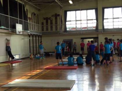 今年の実技研は、器械運動領域のマット運動について学びました。