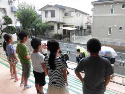 雨がポツポツ降る中でも、元気に挨拶することができました。