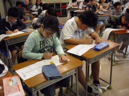 5年生の教室では、・・・朝 漢学習に取り組んでいました。あさの時間を有効利用し、基礎的な力をつけています。