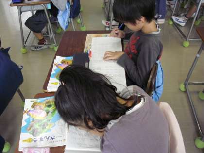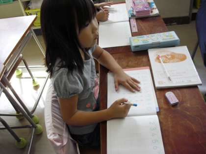 “1けたの繰り上がりのあるたし算”の学習です。繰り上がりを一生懸命に覚えていました。