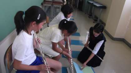 中学生が、5年生にとても優しく教えている姿が印象的でした。優しいお兄さんお姉さんのおかげで子どもたちは楽しく活動することができました。