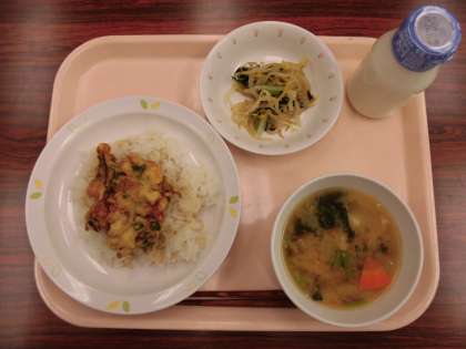 【献立】 かきあげ丼 牛乳