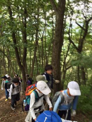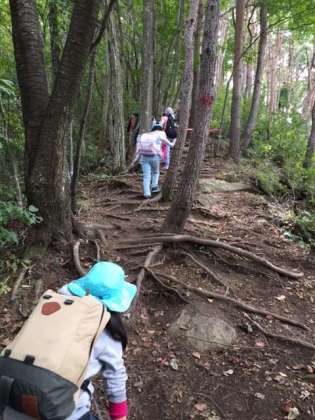雨乞い山の登山は急な山道を登ったり降ったり大変でした。