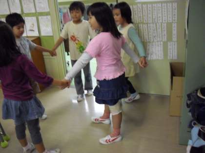 いつものように“おはよう あくしゅ”を友達と輪を作って・・歌いました。