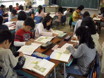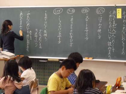 “国語科:忘れられないおくりもの”をよく読んで、先生の質問に答えていました。