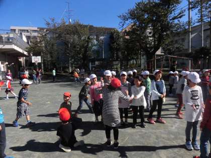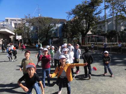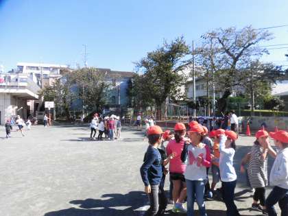 台風一過で清々しい空の下、昼休みはクラス遊びで「王様陣取り」をしました。ばんばん攻める紅組に対し、陣地にこもって慎重に王様を守る白組。何試合かしたのですが結果は白組の圧勝でした。