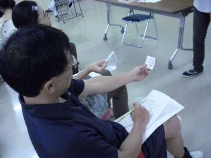 今日の放課後に本校スクールカウンセラーさんを講師に、“すぐにできる教育相談:構成的グループエンカウンター”の理論・実技研修会を行いました。教職員が生徒役になっての実習です。